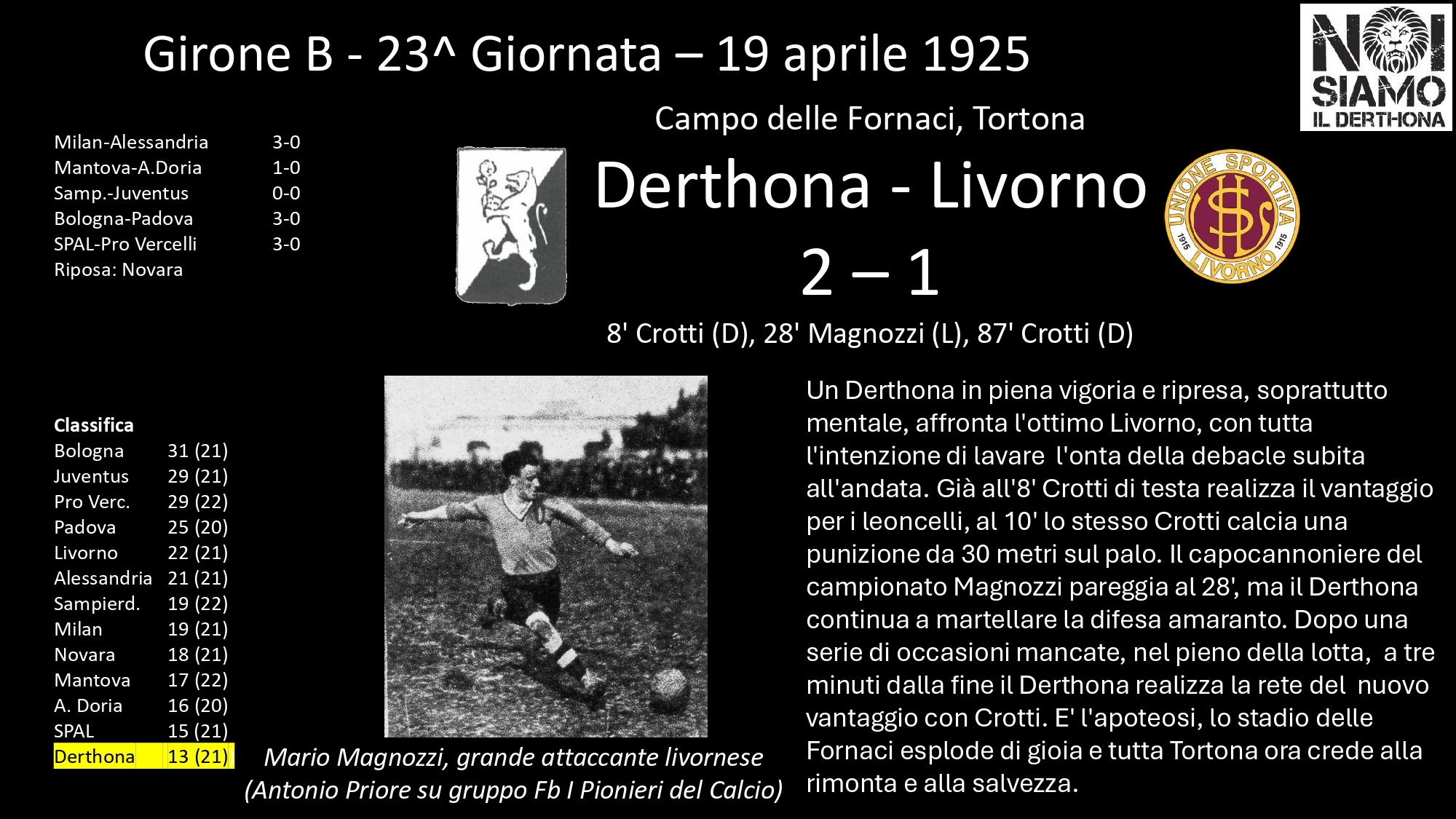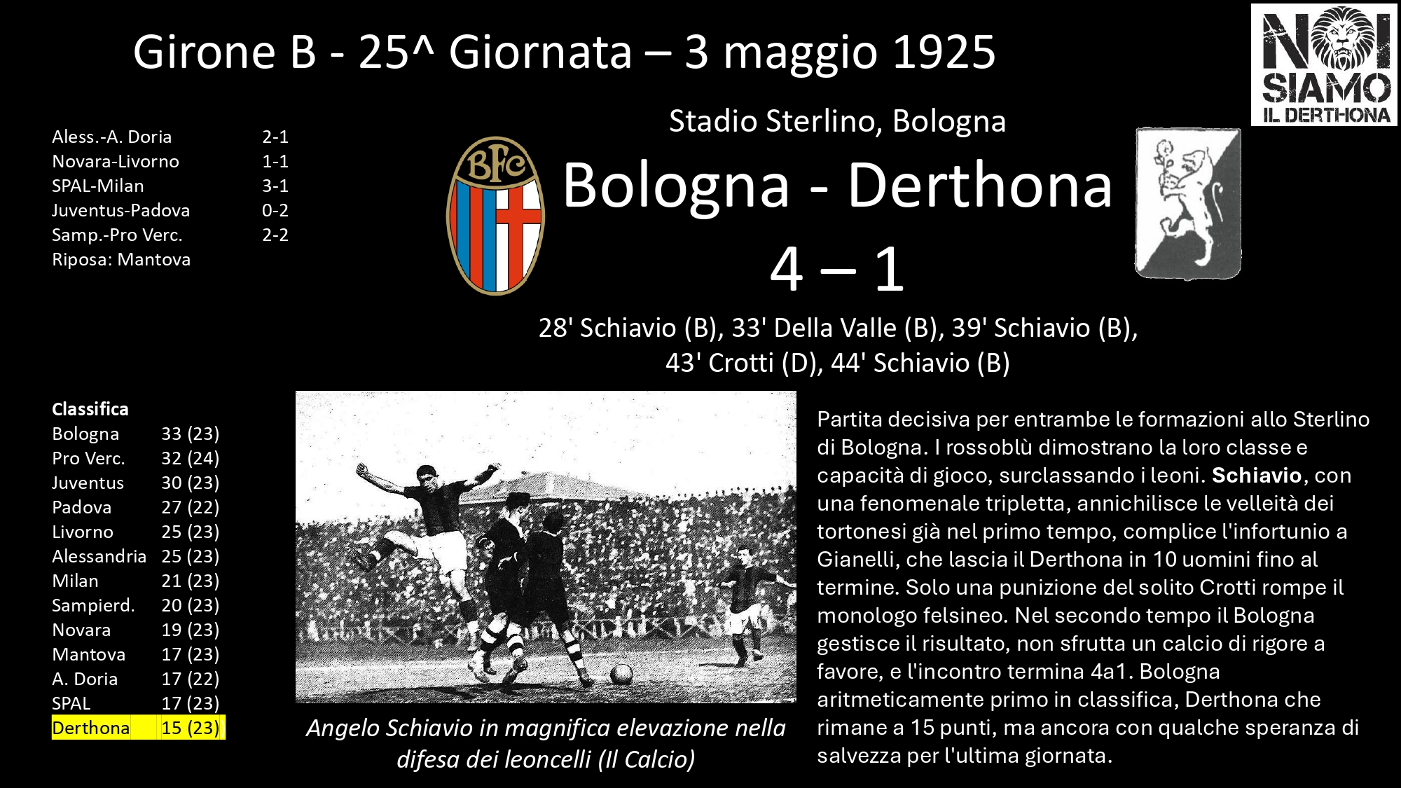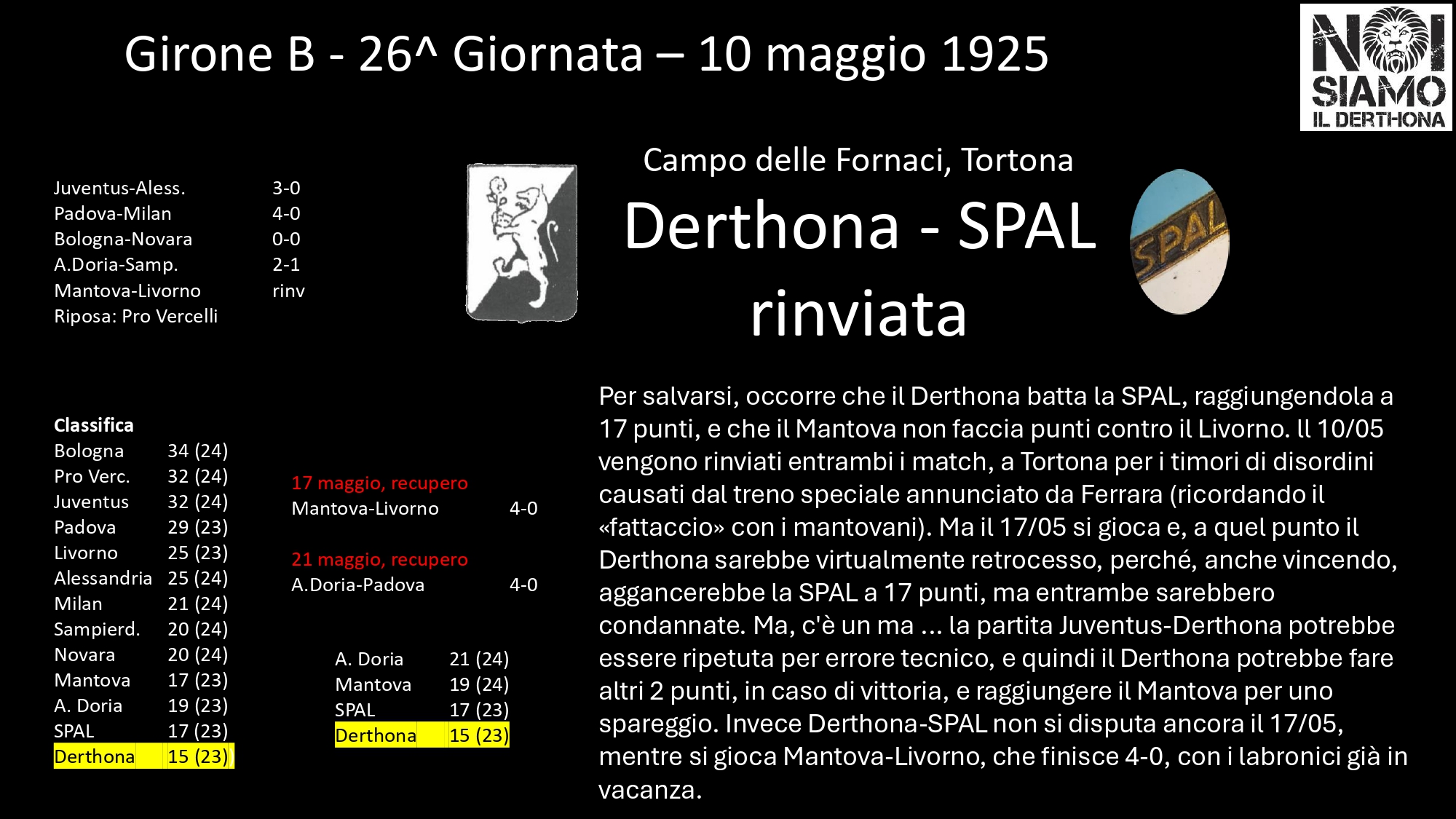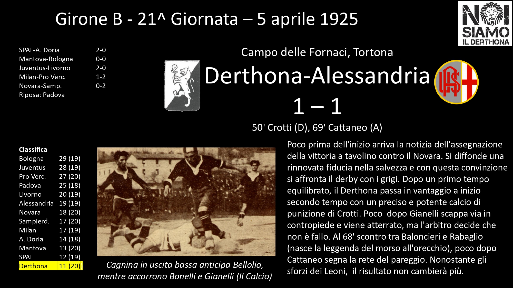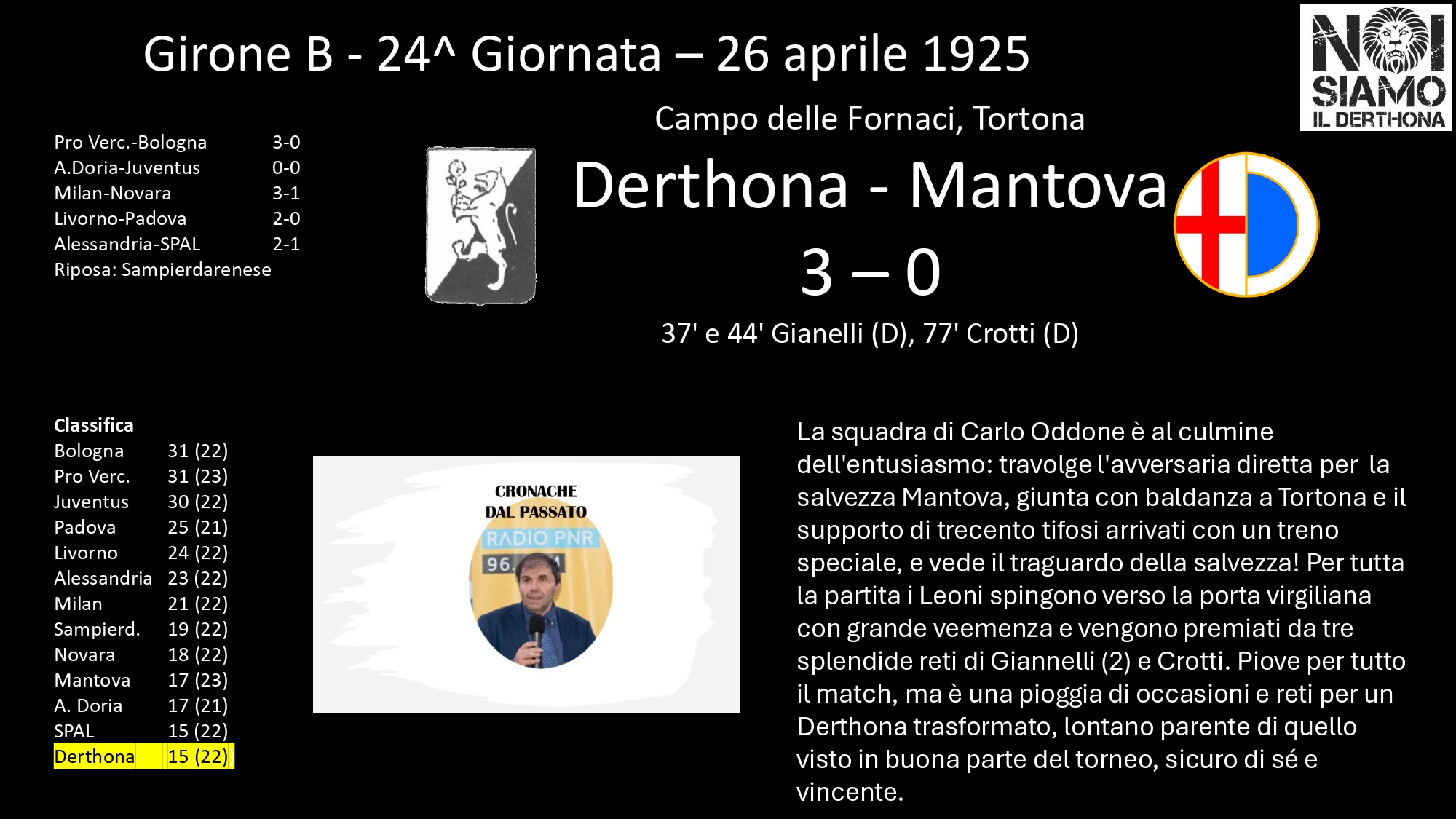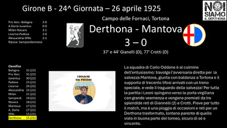 Cronaca delle reti di Derthona-Mantova 3-0 del 26 Aprile 1925, a cura di Domenico Cremonte