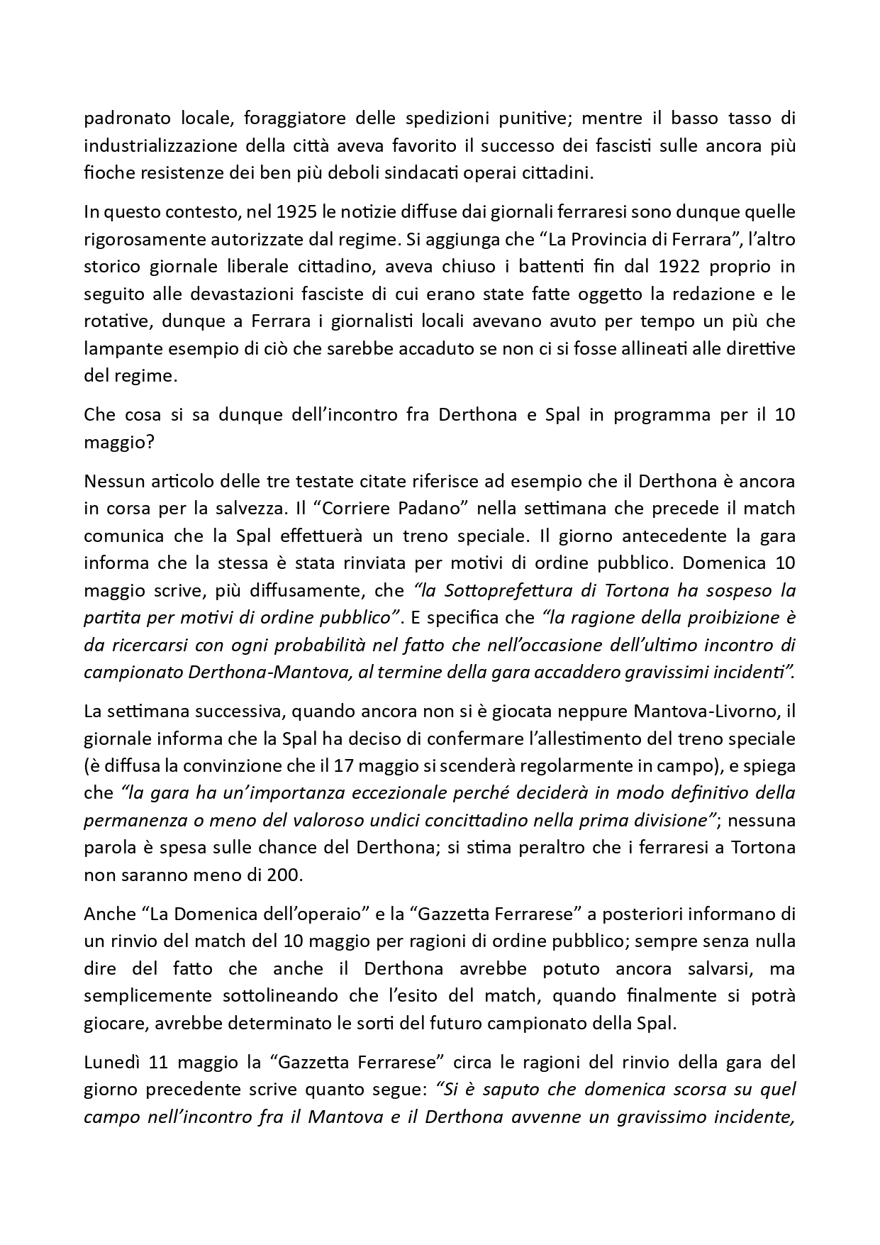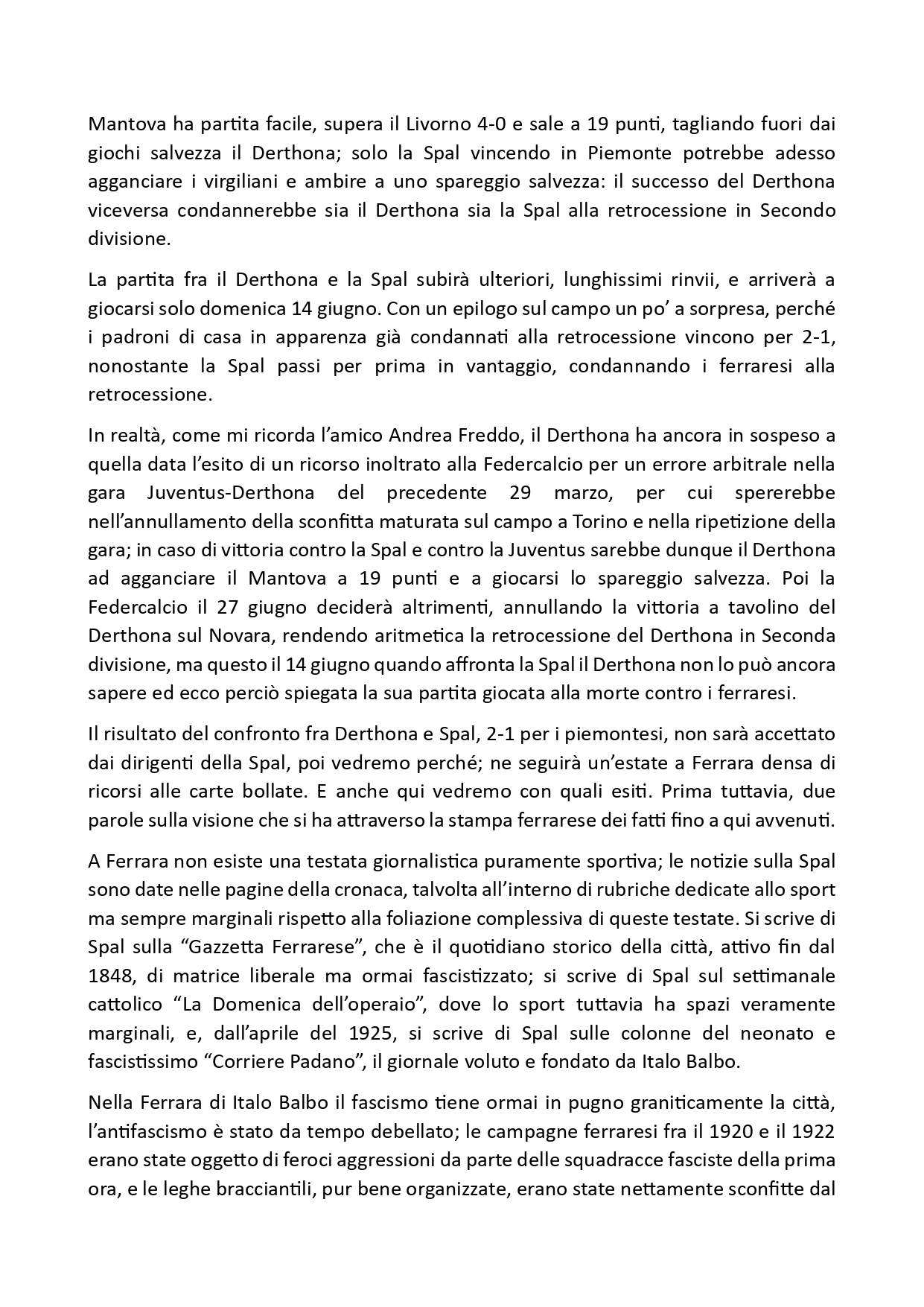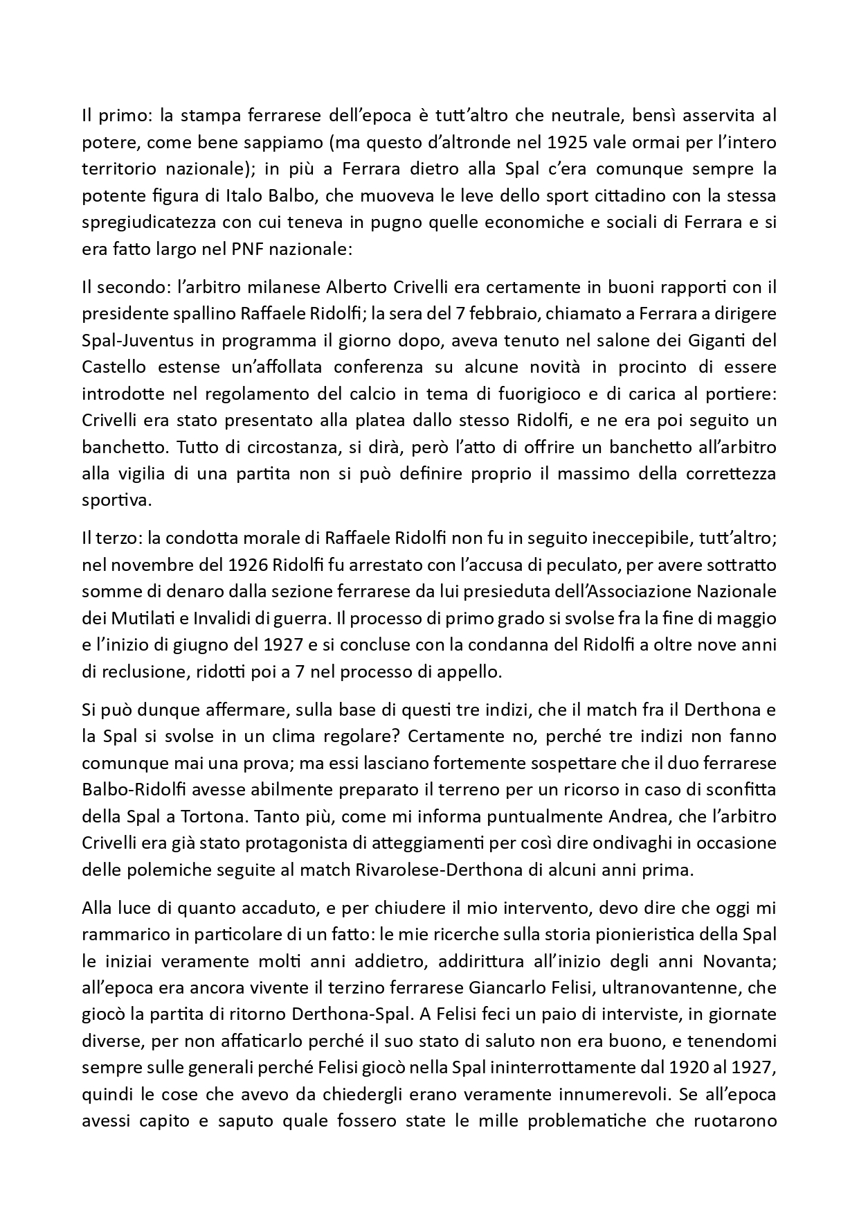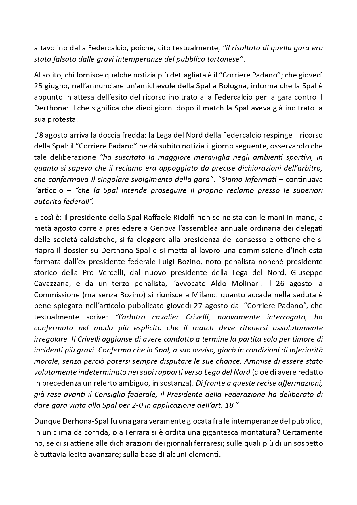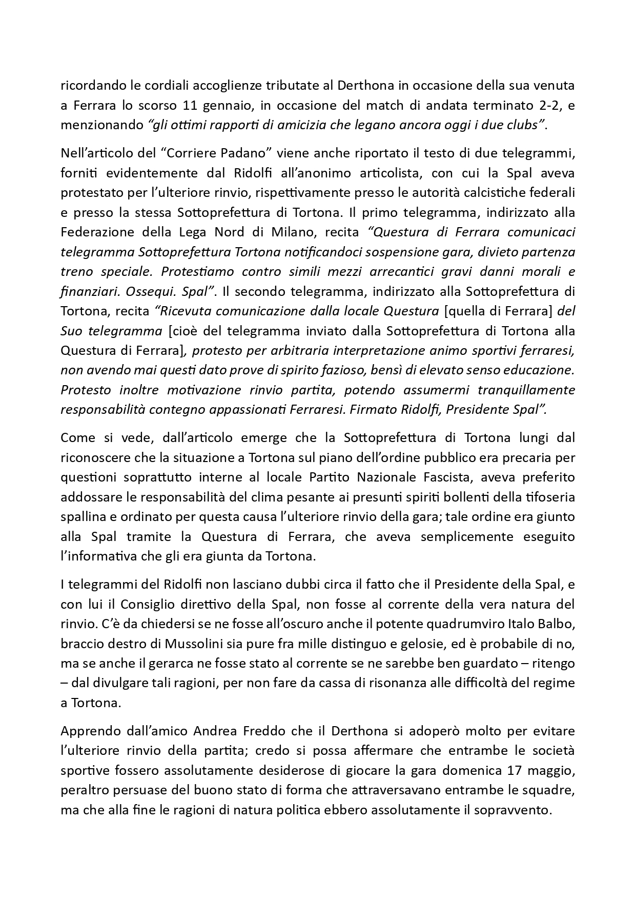 Intervento del Prof.Oscar Ghesini, sulla parte conclusiva del campionato, conclusasi con la retrocessione di Derthona e SPAL