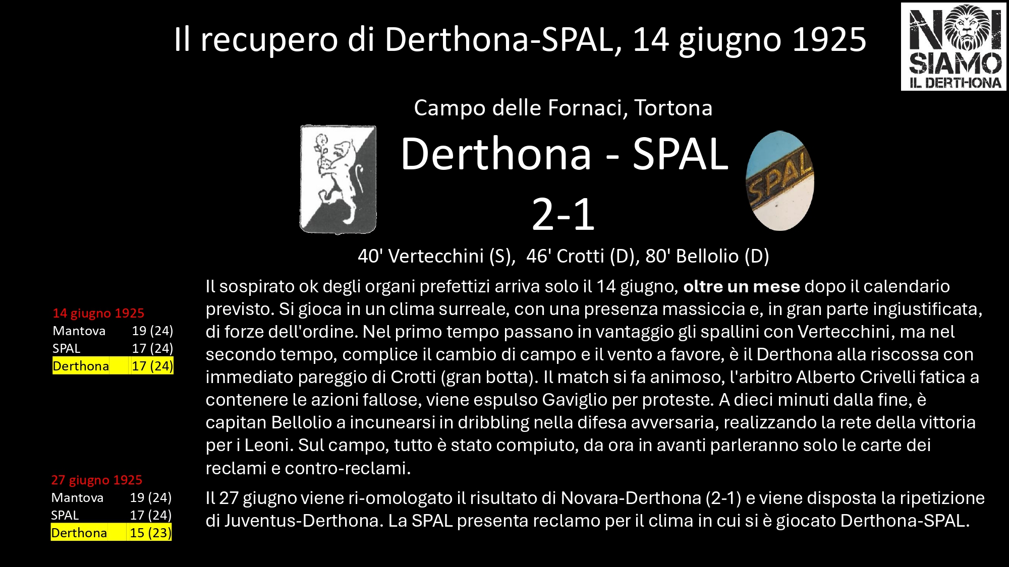 1924-25: 100 ANNI FA... PER L'ULTIMA VOLTA IL DERTHONA IN SERIE A